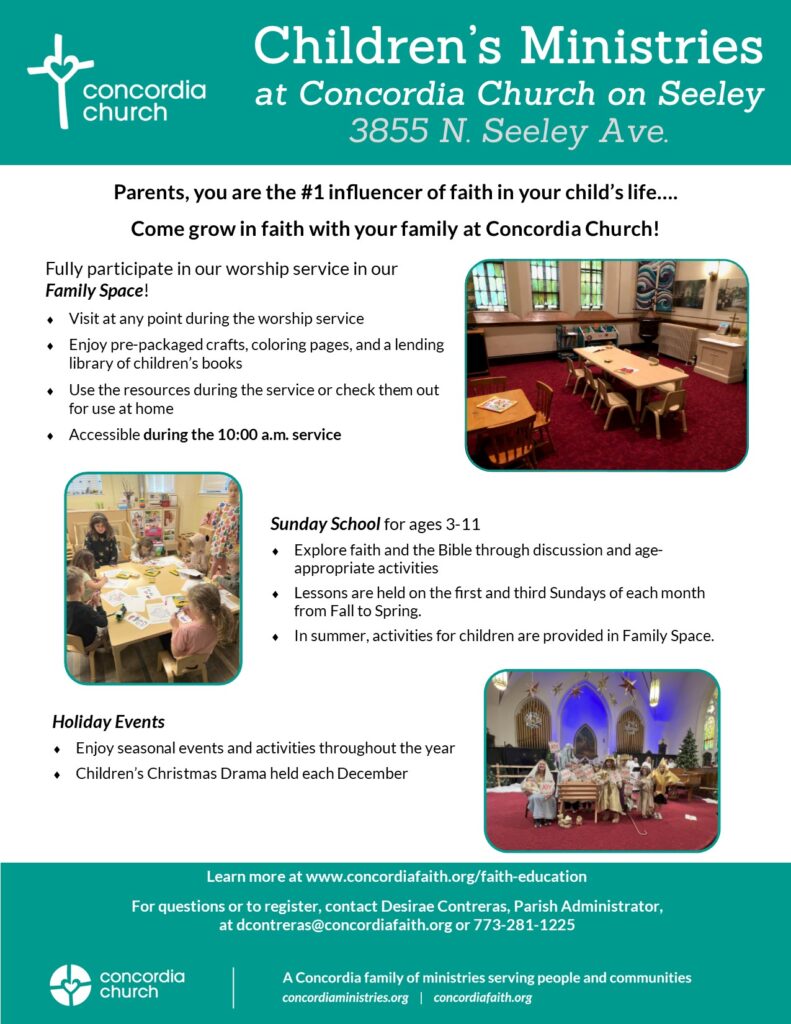 Taught by teachers and parents of other Concordia children, Sunday School classes help children learn valuable life lessons while developing their own thoughts about faith.